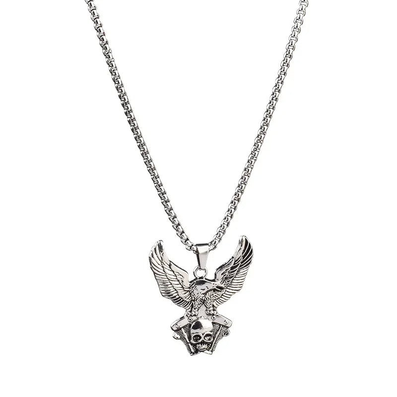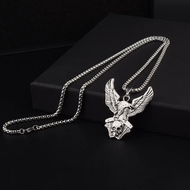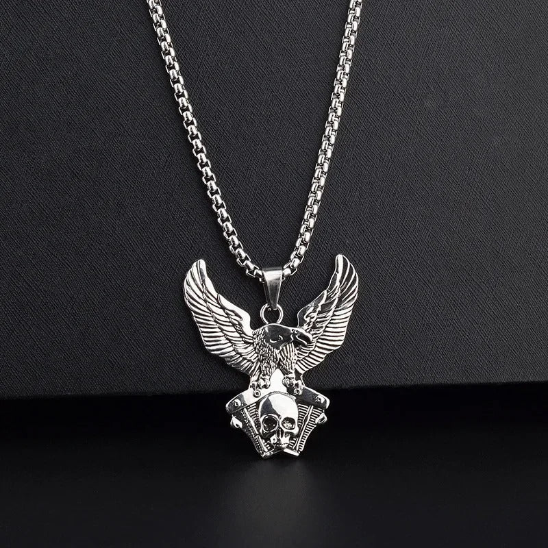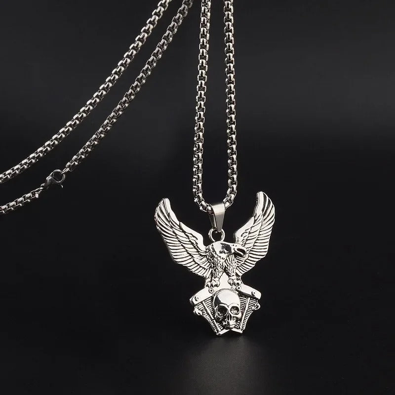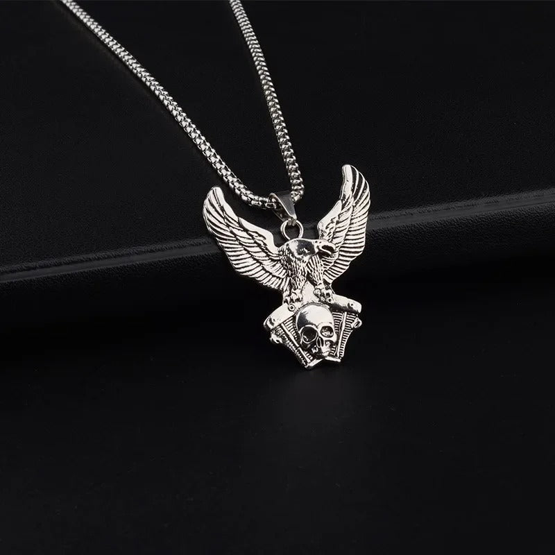 Pendentif moto - Aigle & tête de mort (Avec chaine)