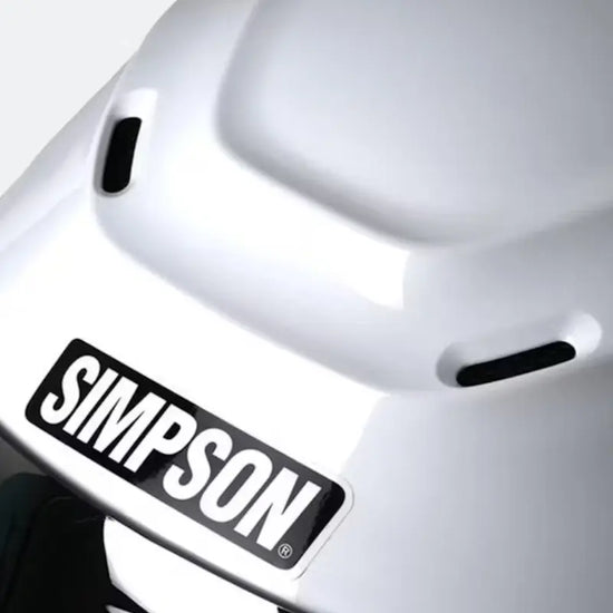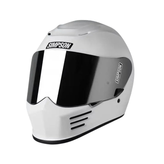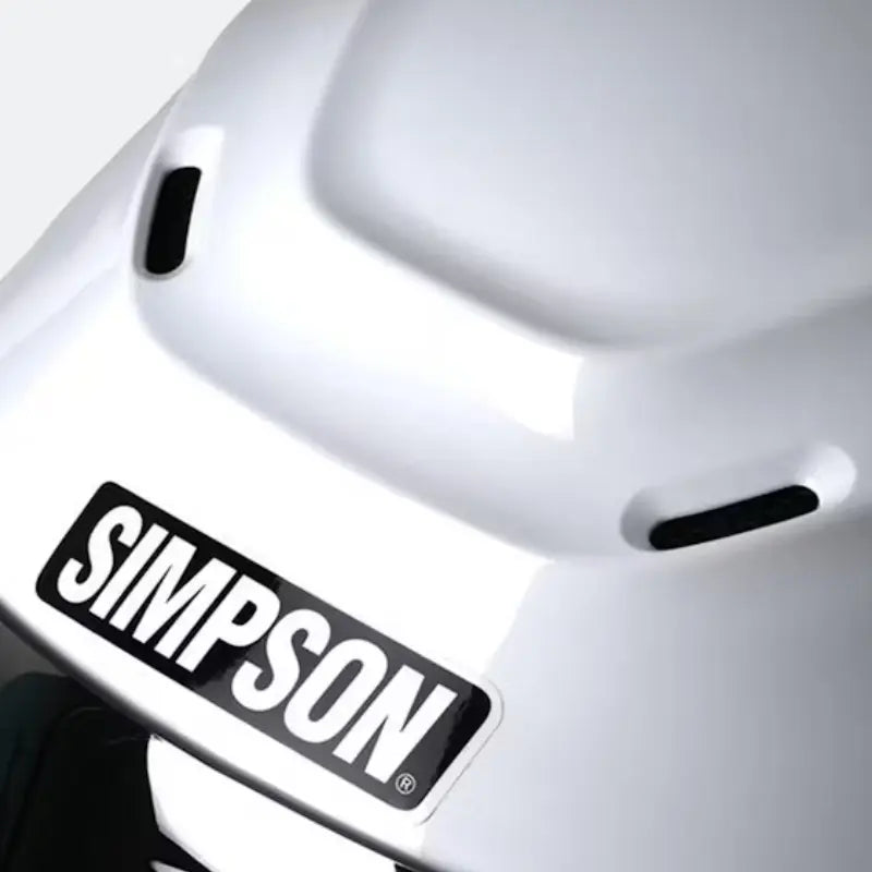Casque moto intégral Simpson Speed blanc, design iconique, visière claire et fentes mentonnière.