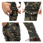 Jean de moto camouflage slim-fit en Nylon Coton avec poches cargo et détails biker.
