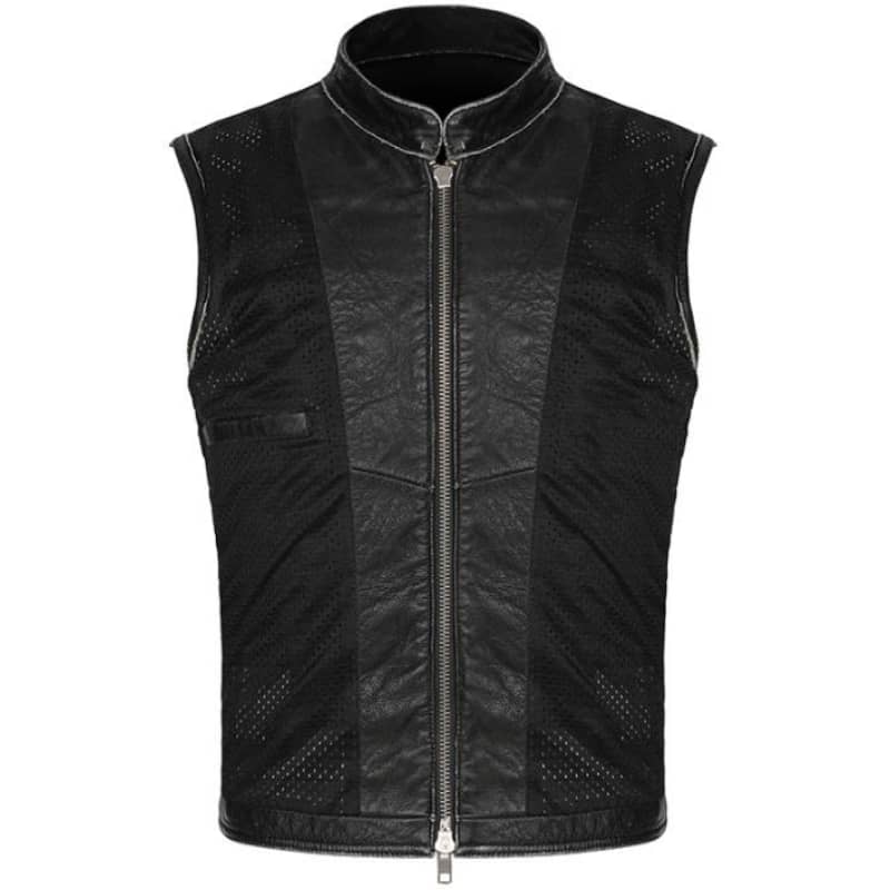 Avec ce gilet en cuir noir, vous adoptez le véritable style biker. Les fermetures éclair robustes, les poches pratiques et la coupe ajustée vous garantissent un look authentique et fonctionnel. Ce gilet est plus qu’un simple vêtement, c’est une déclaration de votre passion pour la route et l’aventure. Associez-le avec un jean et des bottes en cuir pour un look complet.