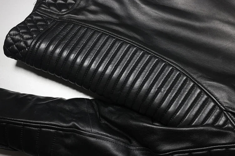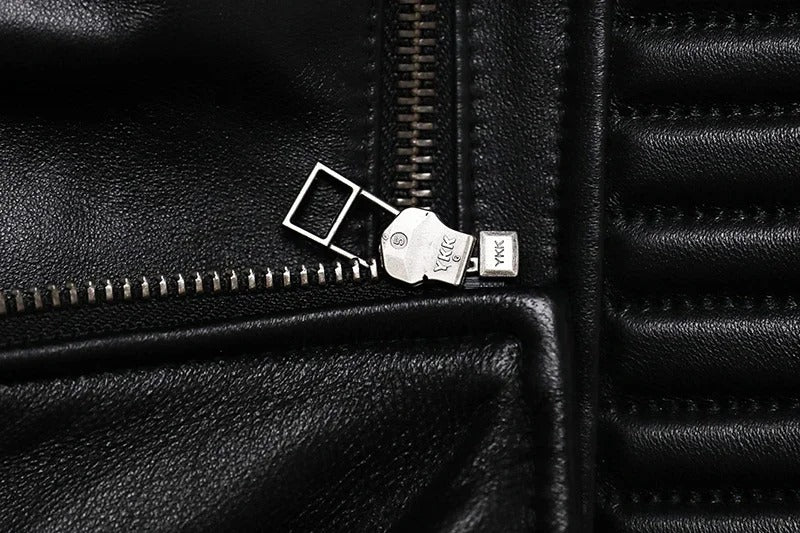 Au-delà de son apparence virile, ce perfecto en cuir a été pensé pour votre confort au quotidien. Grâce à sa doublure soyeuse, il est agréable à porter aussi bien en mi-saison qu'en hiver. Le cuir de mouton, plus léger que le cuir de vachette, assure une thermorégulation naturelle sans alourdir vos mouvements. La coupe ajustée, mais pas contraignante, épouse vos formes tout en laissant la place nécessaire pour porter un pull fin ou un sweat léger dessous. Un allié parfait pour ceux qui veulent un blouson stylé sans compromis sur la liberté.