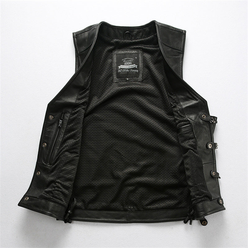 Giacca da motociclista in pelle nera senza maniche