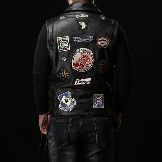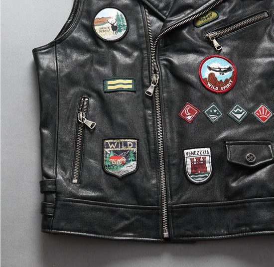 Il nostro gilet da motociclista in pelle nera è la perfetta incarnazione di uno stile audace e senza tempo. Pensato per chi non ha paura di distinguersi, è un'aggiunta essenziale al tuo look. Realizzato in pelle di alta qualità, promette non solo una durata eccezionale, ma anche un comfort senza pari. Indossalo per esprimere la tua personalità e lasciare un'impressione duratura ovunque tu vada.