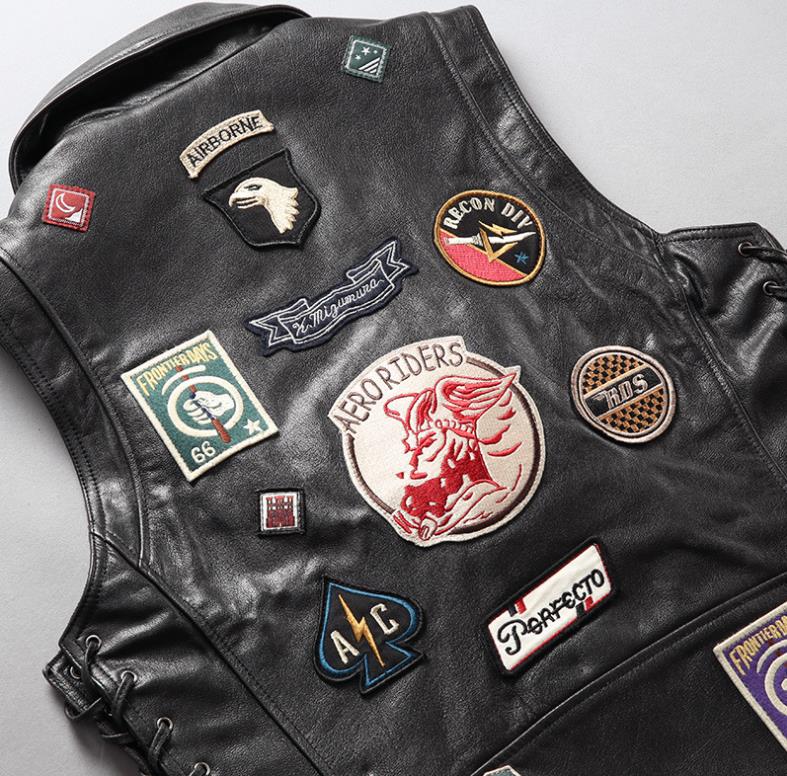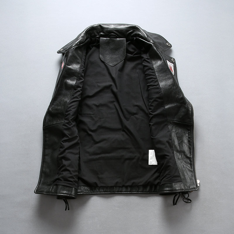 Gilet da motociclista MC in pelle nera