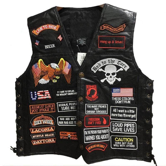 Scopri il nostro gilet da motociclista in pelle , progettato per offrire un comfort ineguagliabile e un'eleganza senza tempo a uomini e donne appassionati di moto. Realizzato con materiali di prima qualità, garantisce la massima libertà di movimento , ideale per tutte le tue avventure su strada. Con le sue numerose patch, questo gilet aggiunge un tocco di carattere e autenticità al tuo outfit. Il suo design meticoloso e le finiture impeccabili lo rendono pratico ed elegante, perfetto per ogni occasione. È il compagno ideale per mostrare la tua passione con stile e sicurezza.