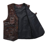 Scopri il perfetto mix di eleganza e comfort con il nostro gilet da uomo in pelle marrone. Realizzato in vera pelle, offre un'eccezionale resistenza pur mantenendo un look sofisticato. La ricca pelle marrone testurizzata aggiunge un tocco di raffinatezza al tuo outfit, sia per un'uscita casual che per un'occasione più formale. Scegliendo questo gilet da motociclista in pelle , opti per un capo di alta qualità che durerà per anni a venire.