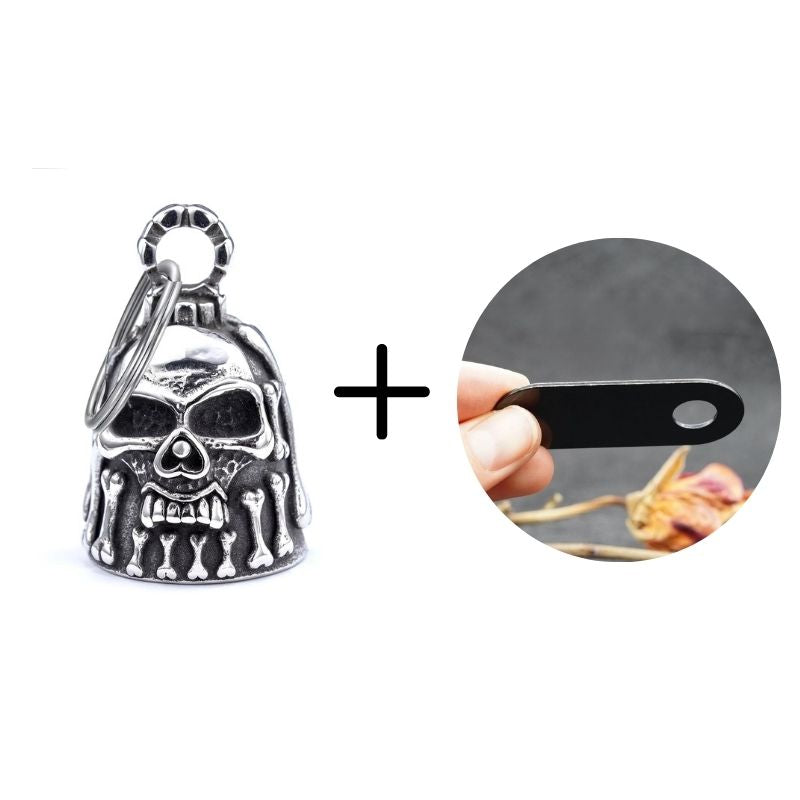 Attacca questa campana custode con teschio e ossa alla tua moto e guida con la sicurezza di essere protetto. Ispirata alla tradizione motociclistica, questa robusta campana in lega di zinco è progettata per allontanare gli spiriti maligni dalla strada e tenere lontana la sfortuna. Ogni osso inciso e ogni dettaglio del teschio simboleggiano forza, lealtà e resilienza, valori cari agli appassionati delle due ruote. Questa campana custode è più di un semplice portafortuna: è una vera e propria dichiarazione di carattere.