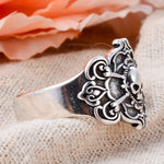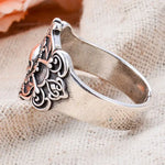 Questo anello è realizzato in metallo color argento con finitura anticata e ossidata per un look autentico.