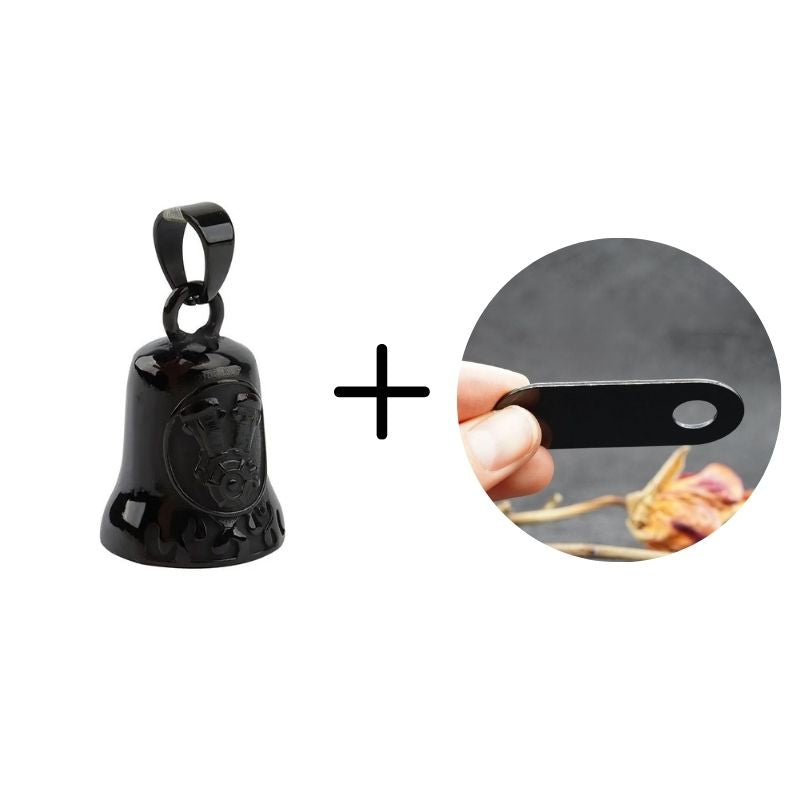 Il nostro campanello da guardia non è solo un portafortuna; è un'opera d'arte a sé stante. Il suo design nero, audace ed elegante, lo rende il complemento perfetto per qualsiasi moto, aggiungendo un tocco di mistero e stile alla tua guida. Realizzato in acciaio di alta qualità, è costruito per resistere alle asperità della strada, pur rimanendo un elemento estetico di grande impatto per la tua moto.