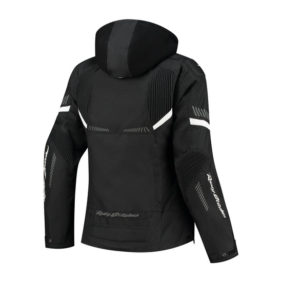 Pensée pour les motardes qui veulent conjuguer style et sécurité, cette veste pour moto femme combine légèreté, respirabilité et confort optimal. Grâce à sa membrane climatique HUMAX®, elle vous garde au sec tout en régulant efficacement la température et l’humidité, que vous rouliez en plein soleil ou sous une pluie battante. Sa coupe régulière et ses nombreux réglages assurent une liberté de mouvement totale, sans compromis sur la protection. Pratique et polyvalent, ce blouson de moto s’adapte aussi bien aux trajets urbains qu’aux longues balades touring. Avec sa capuche amovible, ses multiples poches et ses détails réfléchissants, vous êtes prête à affronter la route avec sérénité et style avec ce blouson pour femme.